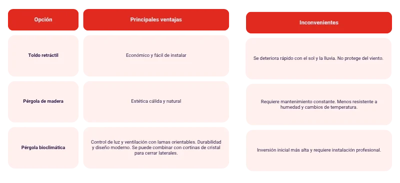 Comparamos pérgola bioclimática contra las soluciones tradicionales